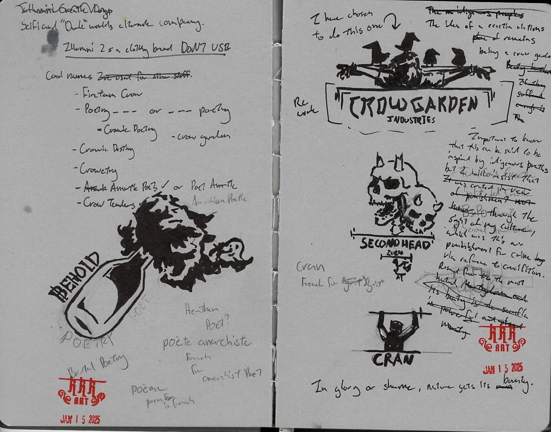 This is a page from my sketchbook as I pondered different logo designs of possible creative company names. This page is a good example of how I do ideation for a project.